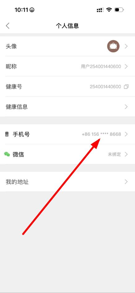 3、在个人信息页面中,点击手机号选项,进入更换手机界面。