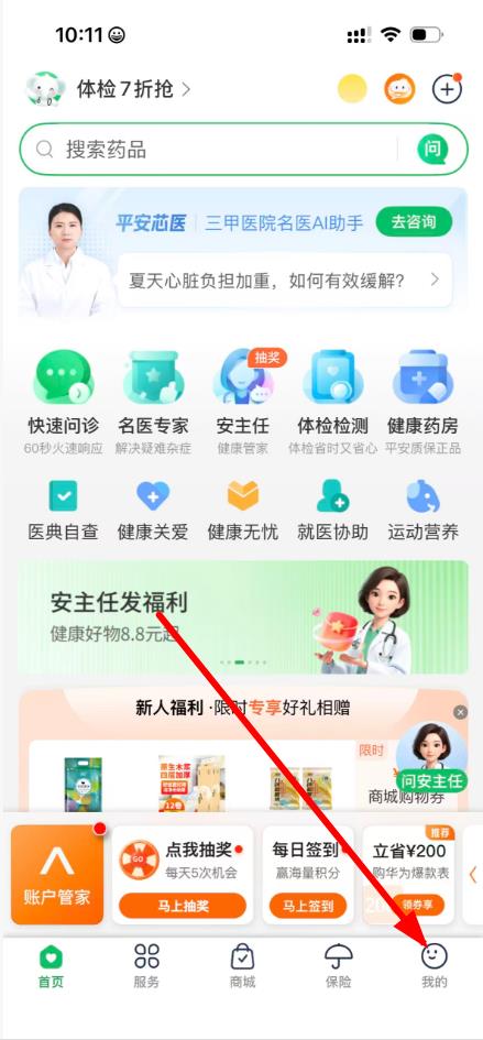 1、在平安好医生首页,点击右下角我的选项,进入个人中心界面。