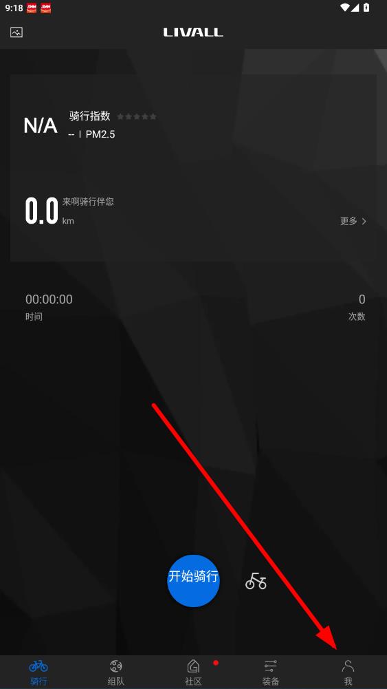 1、打开来啊骑行App,点击底部导航栏最右侧我进入个人页面。