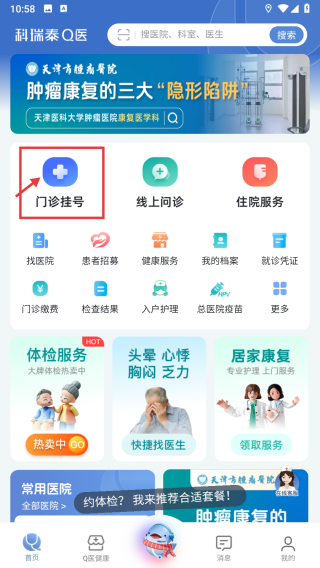 科瑞泰Q医是一款深度融合互联网技术与传统医疗服务的全流程智慧就医平台,致力于构建“线上+线下”一体化医疗生态,它以预约挂号、智能缴费、报告查询为核心,打通门诊、住院、体检、复诊全流程服务闭环,覆盖天津多区域基层医疗机构,整合互联网医院、在线咨询、电子处方等功能。