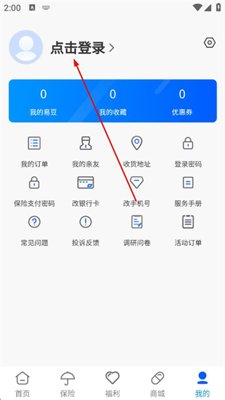 1、打开易健付APP,点击底部我的。