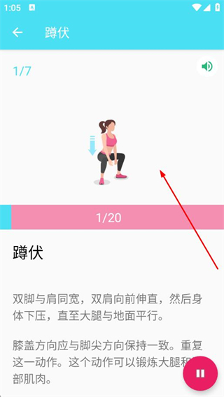 4、在蹲伏训练页面,按照动作说明完成训练动作。