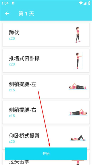 2、在第1天训练页面,点击开始。
