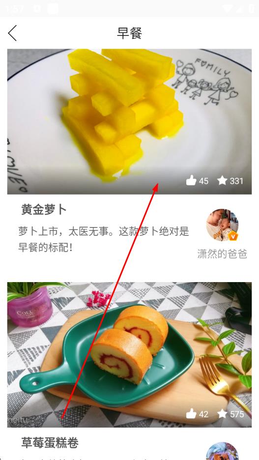 3、进入早餐菜谱列表后,选择你想收藏的菜谱文章,点击进入。