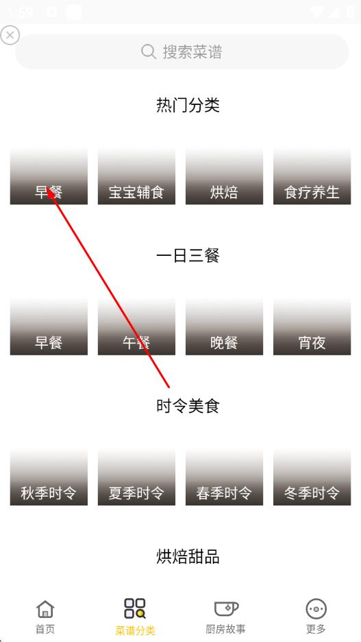 2、在热门分类里选择想要查看的菜谱类别,比如点击早餐。