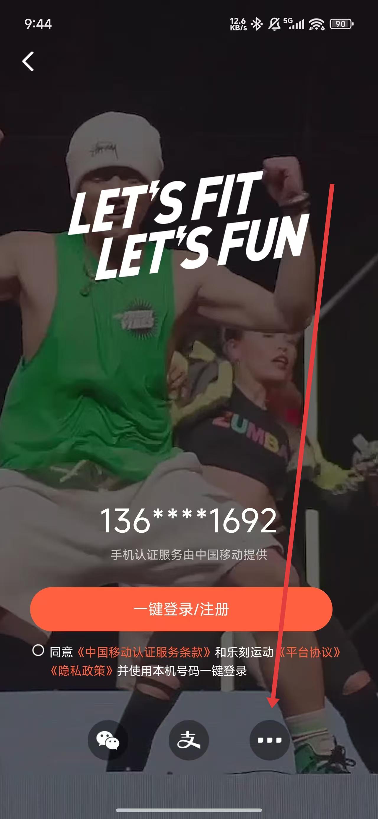 1、可以点击乐刻运动首页下我的按钮,开始进行登录操作。