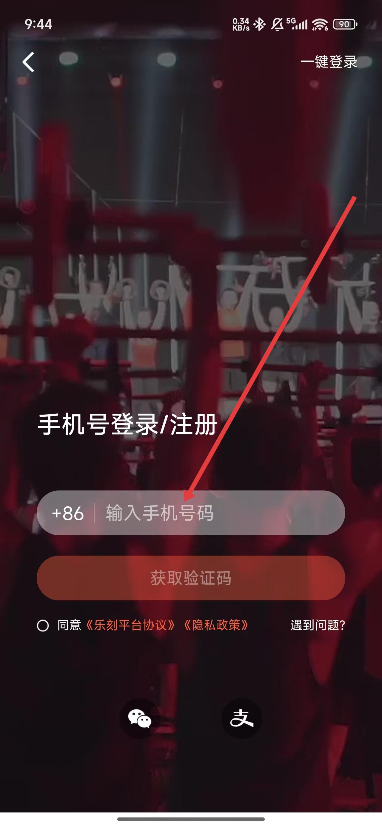 4、点击输入框填写手机号以获取验证码后,完成登录操作。