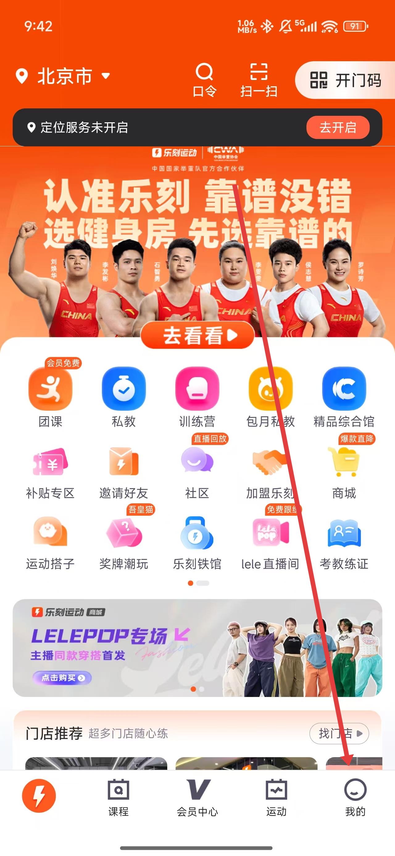 1、首页定位调整到城市范围,可以快速查看离自己最近的门店、可约团课及推荐的教练。