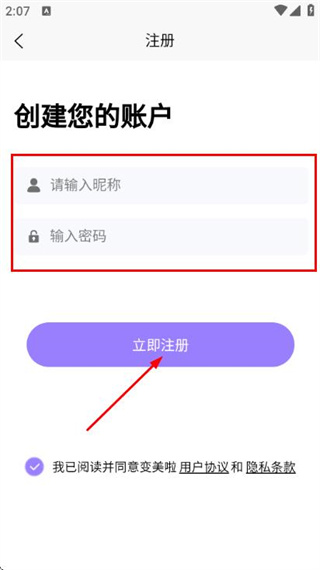 3、在注册页面输入昵称和密码,点击立即注册,完成注册操作。