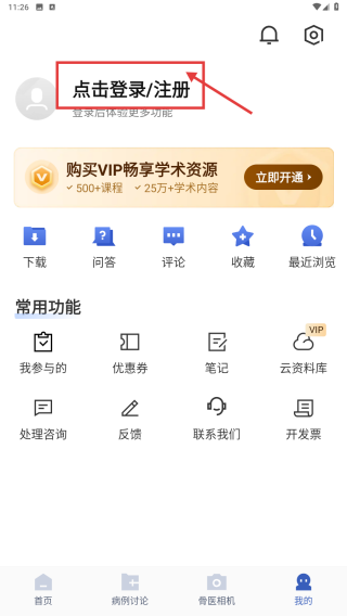 1、打开医疗学习类APP,点击底部我的选项,进入个人中心页面。