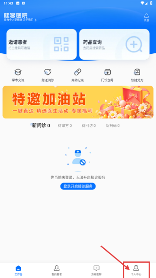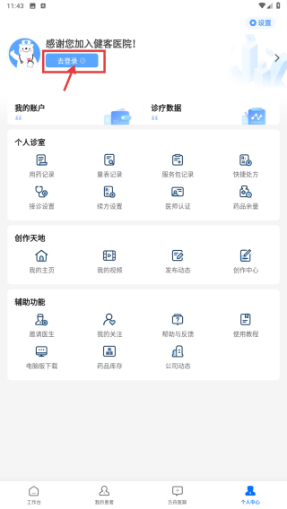1、打开医疗类APP,点击底部个人中心选项,进入个人中心页面。