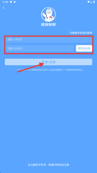 4、输入验证码后点击登录/注册按钮,完成账号登录操作。