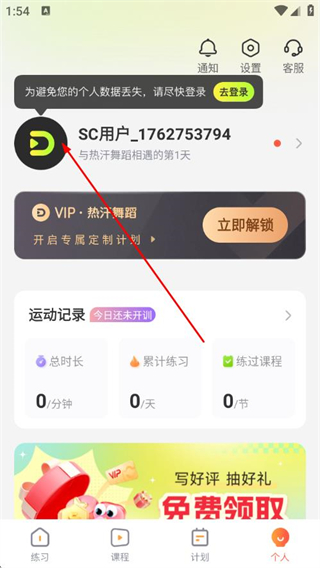 1、打开热汗舞蹈APP,点击底部个人进入个人中心页面。