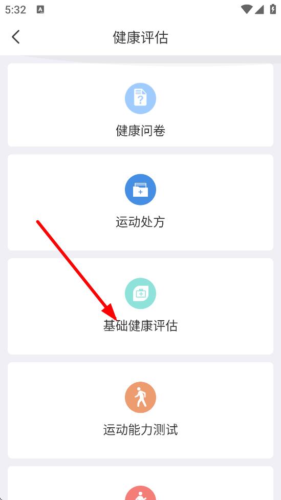 2、在健康评估页面,点击基础健康评估。