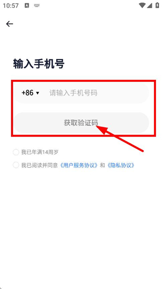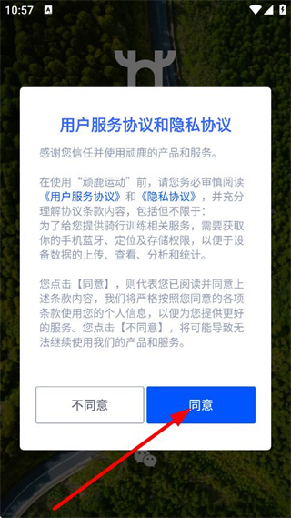 1、在用户服务协议和隐私协议弹窗中,点击同意,进入注册登录页面。