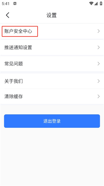 3、然后在进入到设置的界面之后,直接就点击这个【账号安全中心】的选项,前往关于安全账号的设置;