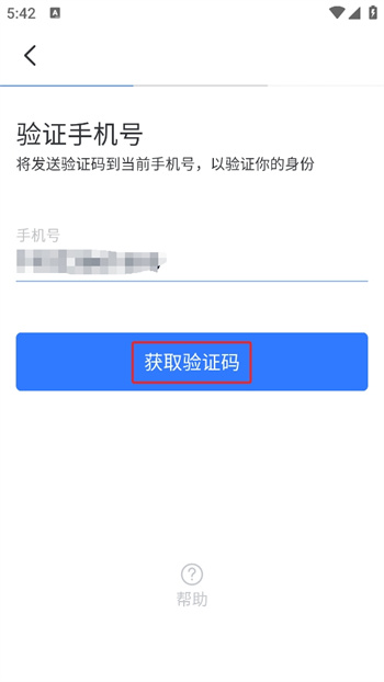 4、在这里为了验证你是否是当前账号的真实身份,需要在更换账号之前,验证当前绑定的手机号,点击【获取验证码】;