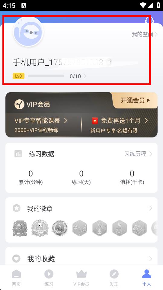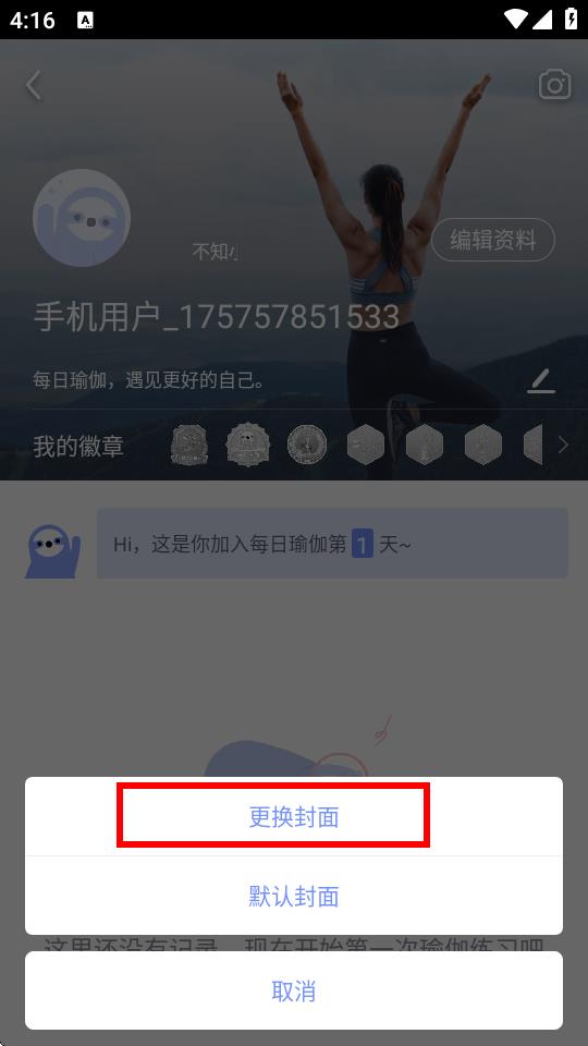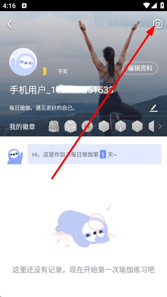 1、打开每日瑜伽APP,在个人页面中点击顶部带有头像和昵称的区域,进入个人资料展示页面。