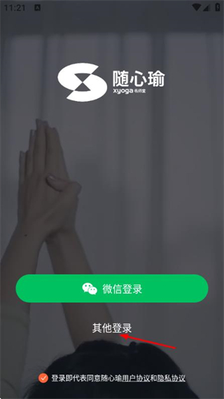 1、进入随心瑜大学,点击其他登录,进入手机号登录页面。