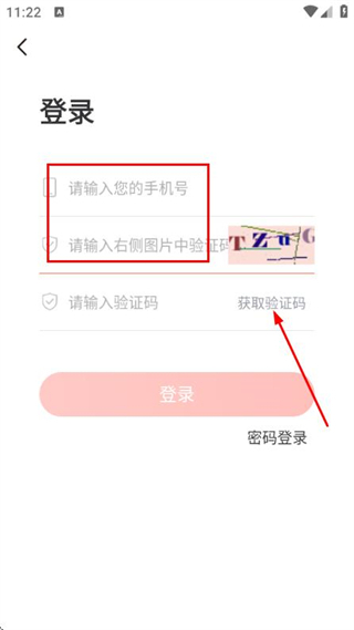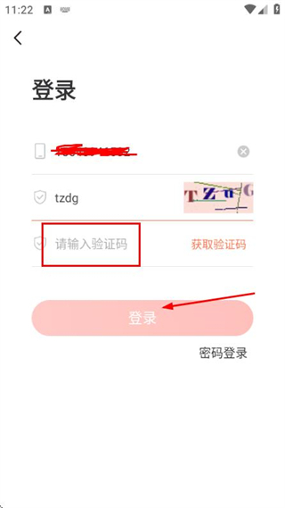3、在验证码输入框中填写收到的验证码,点击登录完成账号的登录操作。