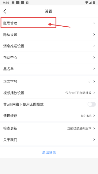 3、在设置界面,点击账号管理选项,进入账号管理页面。