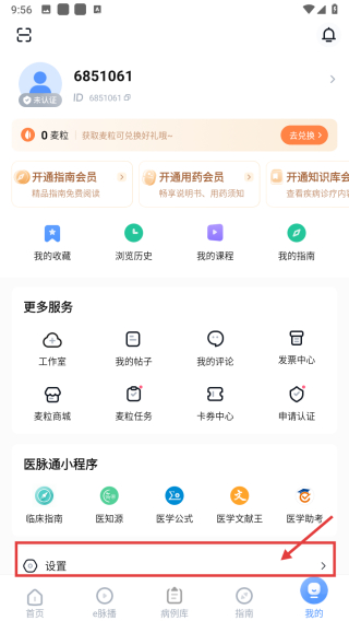 1、打开医学服务类APP,点击底部我的选项,进入个人中心页面。
