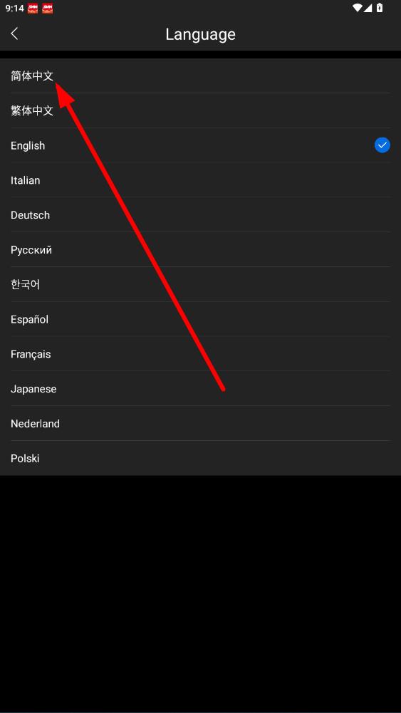 4、在语言选择页面,点击简体中文即可将App语言更换为中文。