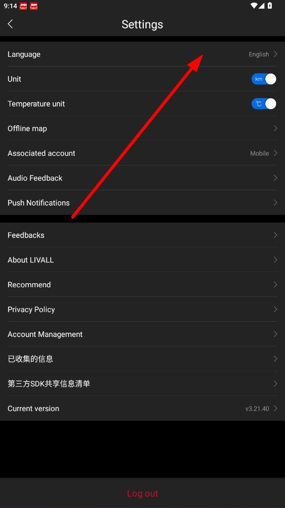 3、在设置界面里,点击Language选项,进入语言选择页面。