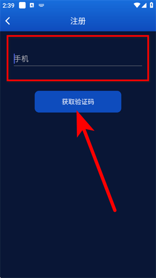 3、在注册页面,输入手机号码,点击获取验证码。