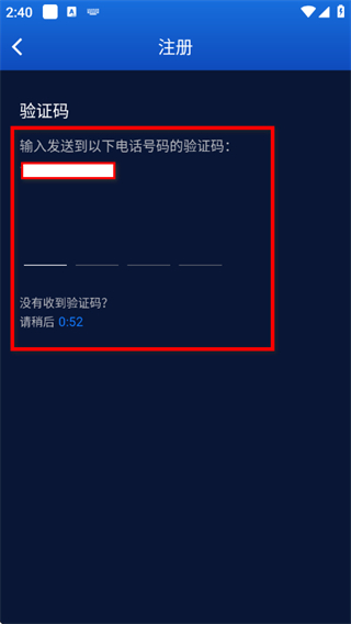 4、在输入验证码页面,输入验证码,完成注册流程。