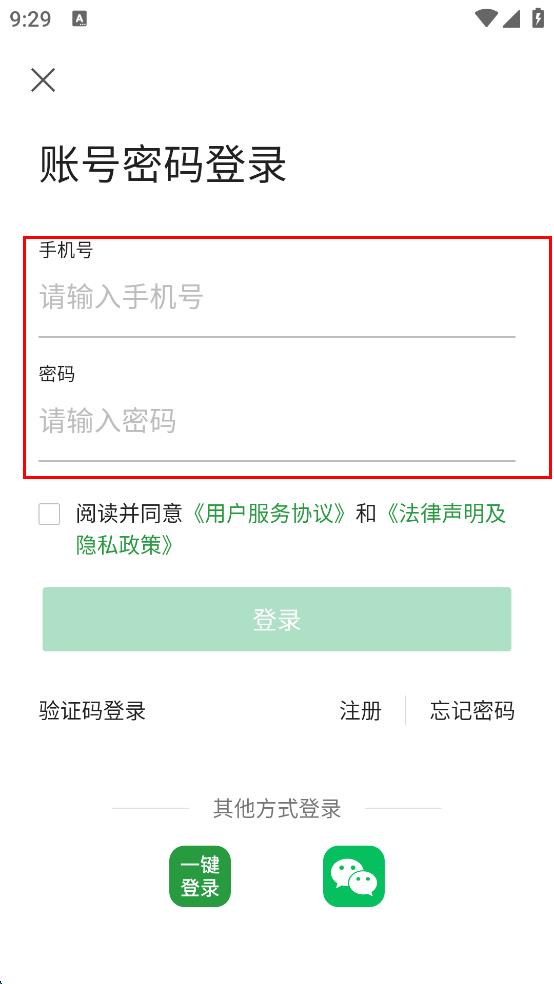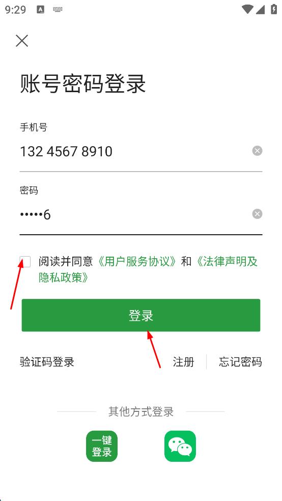4、完成手机号和密码输入后,勾选阅读并同意用户服务协议和法律声明及隐私政策,然后点击“登录”按钮,即可完成账号密码登录操作。