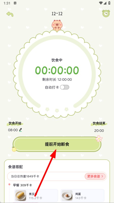 4、根据需求点击提前开始断食按钮,调整断食时间,开启轻断食计划。