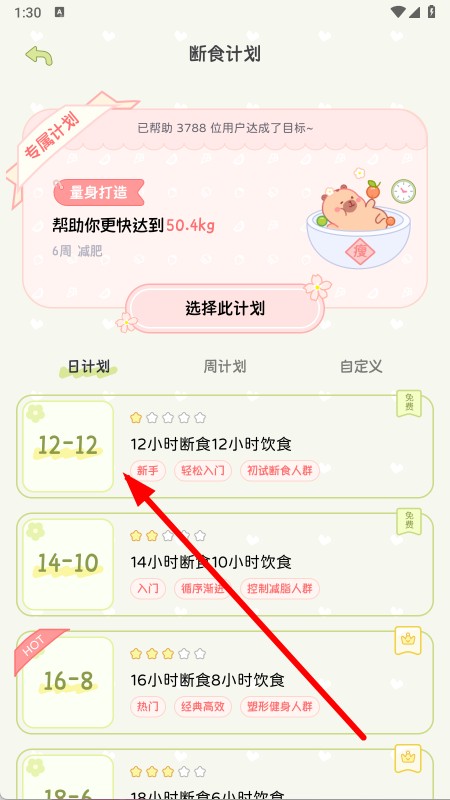 2、选择适合自己的断食计划,点击进入该计划详情页。