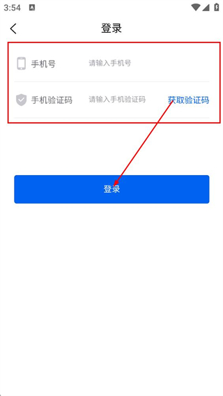 4、在登录页面,填写手机号和验证码,点击登录完成登录操作。