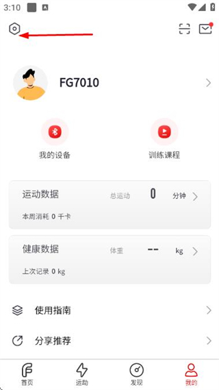 1、在FITLOG首页点击底部我的,进入个人中心页面。
