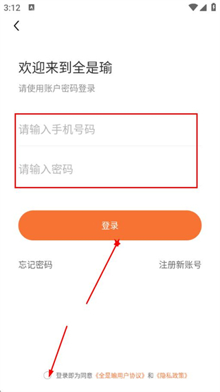 3、输入手机号码和密码,勾选协议,点击登录”。