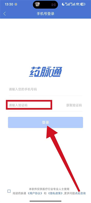 1、打开药脉通,在弹窗中点击同意,进入登录选择界面。