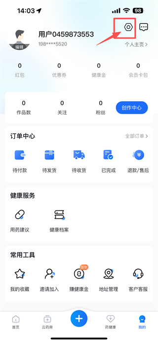 2、在功能页面,点击顶部用户头像区域,进入个人中心设置界面。