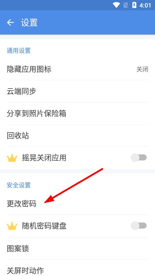 3、在设置页面里,点击更改密码选项,进入更改密码流程。