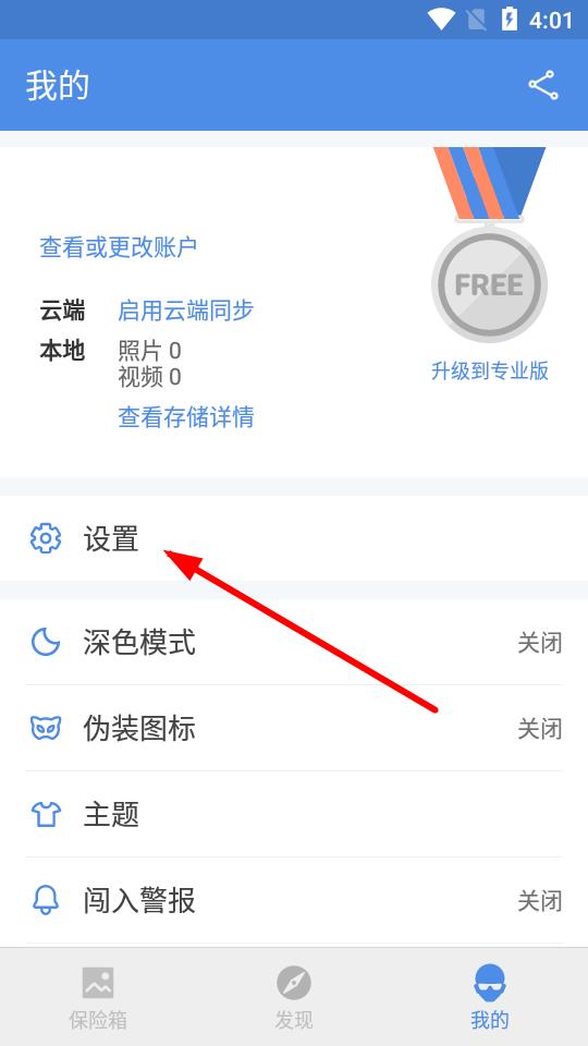 1、打开照片保险箱app,点击底部导航栏最右侧我的选项,进入个人相关界面。