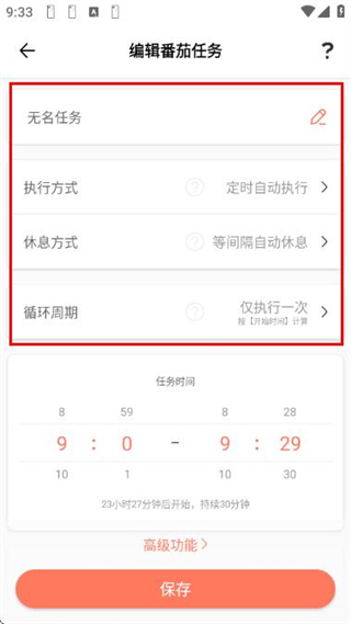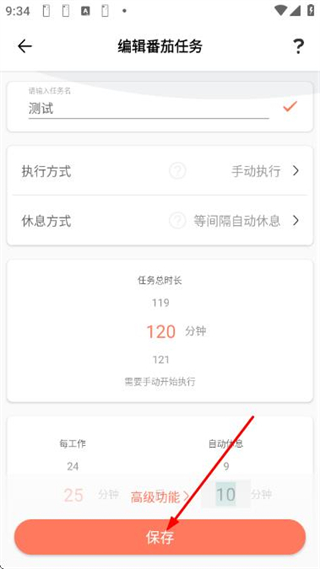 3、确认番茄任务的各项信息无误后,点击底部的保存按钮,完成该番茄任务的创建操作。