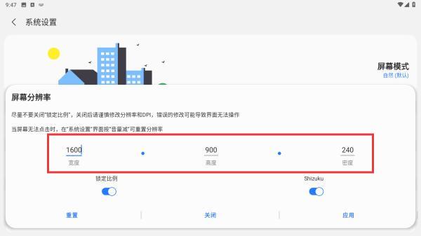 3、在屏幕分辨率的界面内,可修改宽度、亮度、密度。