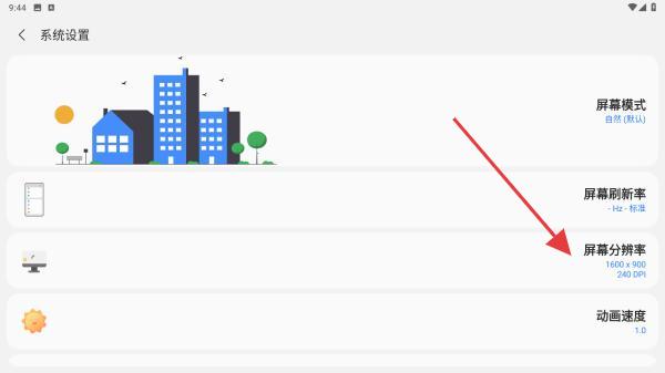 2、进入系统设置的页面内,点击屏幕分辨率的按钮。