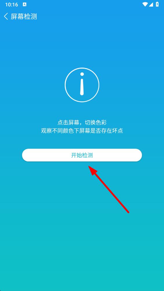 3、进入坏点检测页面后,点击开始检测按钮,鲁大师将开始显示不同颜色的画面。