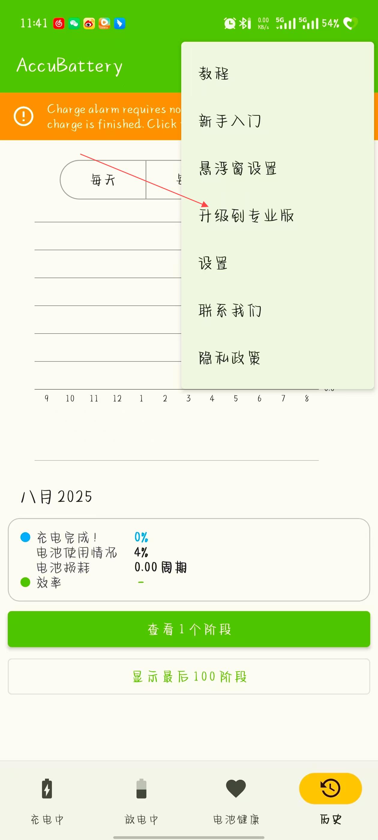 充电页面:显示充电周期未包含在电池健康计算中的原因。