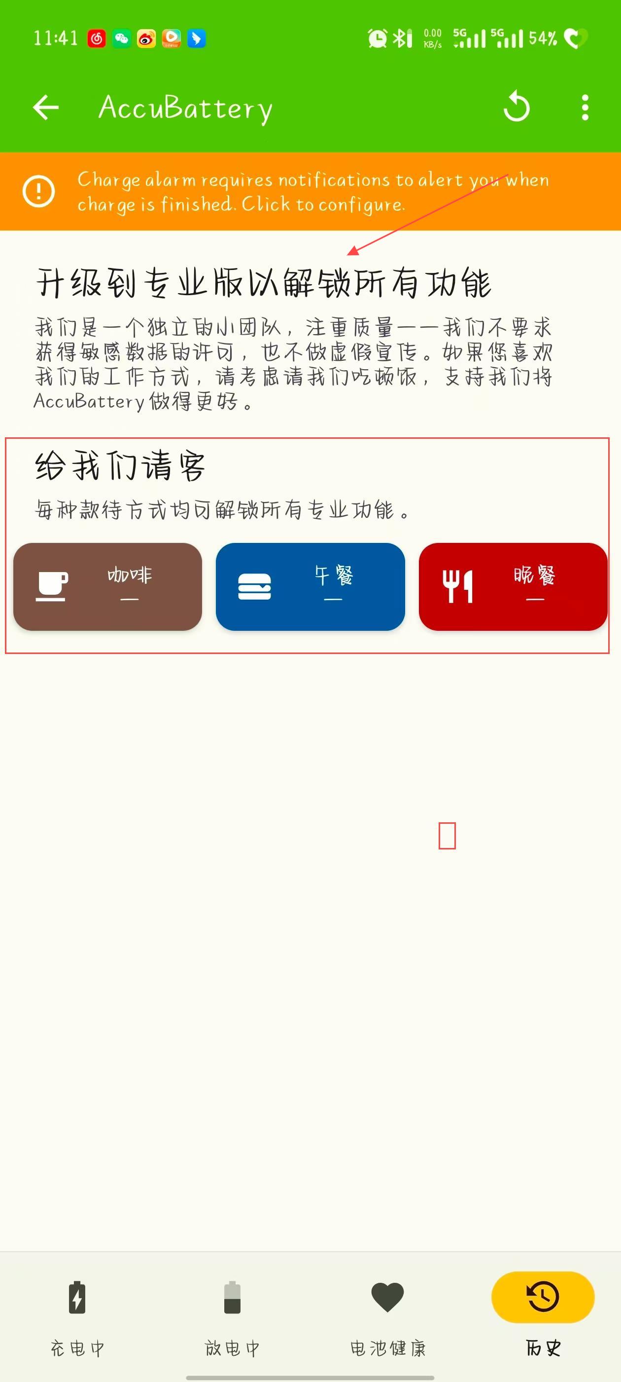 3、在升级到专业版以解锁所有功能页面,能看到给我们请客板块,每种款待方式均可解锁所有专业功能。
