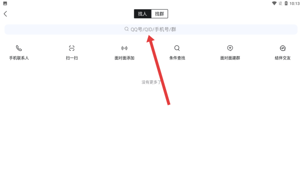 3、在找人页面中,可以点击上方的输入框,输入好友的QQ号进行添加。