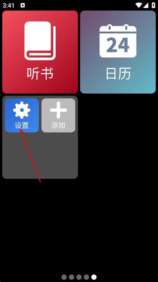 1、在手机主屏幕,滑动底部圆点切换页面,找到含“设置”图标的界面,点击“设置”进入设置菜单。