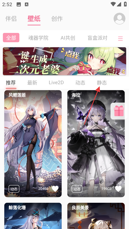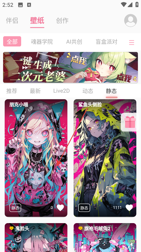 3、在静态分类下,选择喜欢的壁纸,比如朋克小喵。