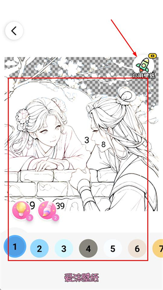 3、在涂色编辑页面,完成涂色后还点击应用壁纸将其设置为壁纸。